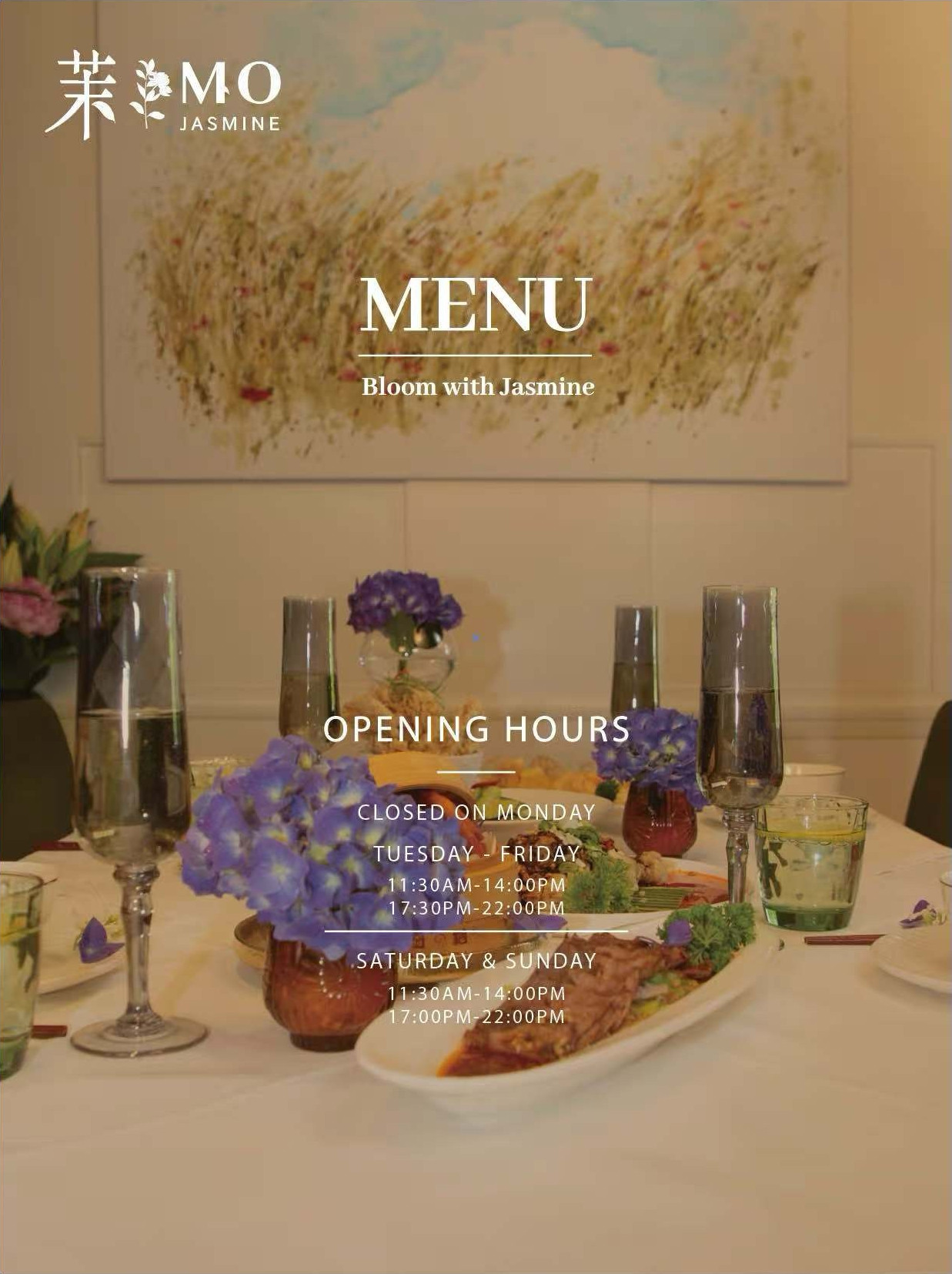 MO aspires to be a bridge connecting the diverse cultures of China and the West, bringing physical and mental pleasure and satisfaction to people through cuisine, art and activities. In the days to come, we are committed to enabling more people to feel the spiritual power contained in jasmine flowers, spreading the beauty and hope of life, and allowing every customer who steps into MO to find their own tranquility and emotion here, and witness the brilliant blooming of life together.